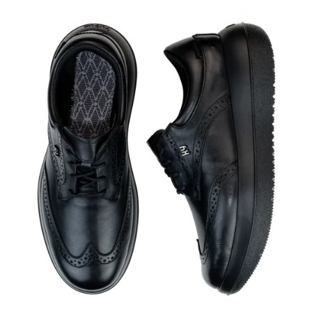 kybun designed the modern, comfortable Chiasso Black to be reminiscent of mediaeval long-toed shoes. The tip has been symbolically sewn onto the shoe in the opposite direction and stands out thanks to its elegant perforated pattern.