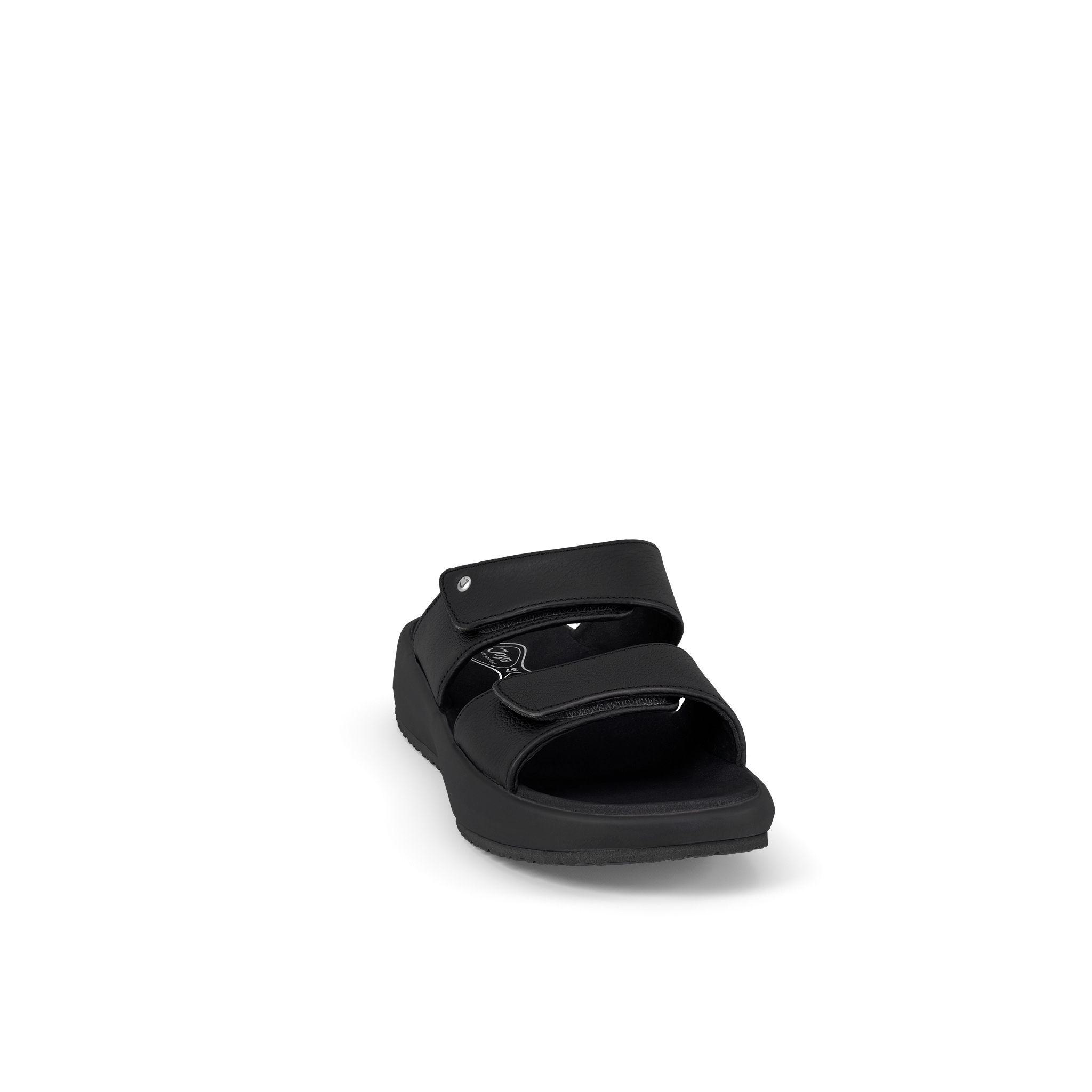Vienna II black: Your everyday comfort best friend. Tasteful full grain leather two straps sandal with velcro for quick and adjustable fit. Enriched with silky microfiber lining and insole and abrasion resistant lightweight EVA outsole. Featured with the Joya Senso sole technology that ensures excellent cushioning effect and balanced pressure distribution, delivering optimum comfort and relief for your back muscles, joints and feet daily stress.
