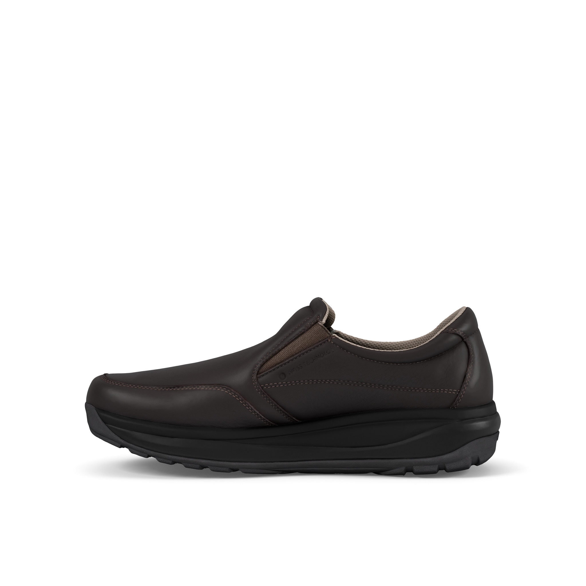 Traveler II dark brown: Smart twin gore loafer in full grain leather, leather lining, padded collar and tongue, rubber sole. Easy to slip in and out, perfect for everyday use. Featured with the Joya Senso sole technology that ensures excellent cushioning effect and balanced pressure distribution and delivers optimum comfort and relief for your back, joints and feet daily stress.