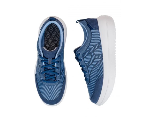 The village of Bauma in Switzerland is renowned for its processing of textiles, and in particular for the special Jacquard weaving machines. The kybun Bauma 20 Blue takes its name from the elegant jacquard pattern. The elegantly lined pattern woven on the kybun Bauma 20 Blue gives it a captivating look and adds a sporty, youthful accent. The shoe goes very well together with endless combinations of outfits thanks to the nautical touch.