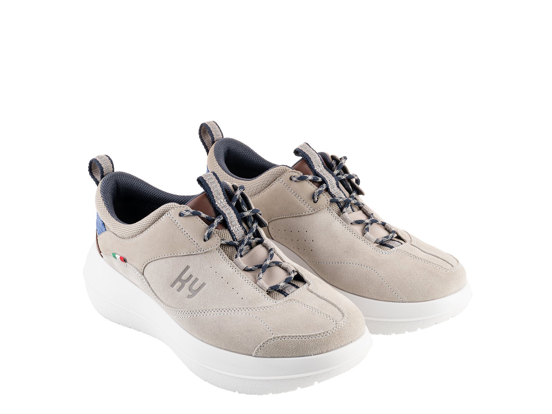 Modern and sleek velour leather lace up shoe with elegant leather details, asymmetric upper and two-tones laces. Sophisticated yet versatile, dynamic and effortlessly stylish. Featured with our unique Swiss air-cushion sole, with high rebound effect, that provides an exceptionally gentle walking sensation while relaxing the strain on the joints and the back, stimulating the health-promoting receptors in the feet and strengthening the muscles at every step.