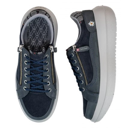 Swiss wrestling is a national sport in Switzerland. This type of freestyle wrestling requires strength, stamina and the right movements. The Kilchberg Grey-Blue combines all these characteristics in a unique model and is based on the Kilchberg-Schwinget wrestling festival that takes place every six years. Made with Edelweiss decorated fabric from a Swiss weaving mill, the low shoe ensures healthy and invigorating movements. Your legs feel less tired and you can walk and stand for longer. Almost like our wrestlers in Kilchberg!