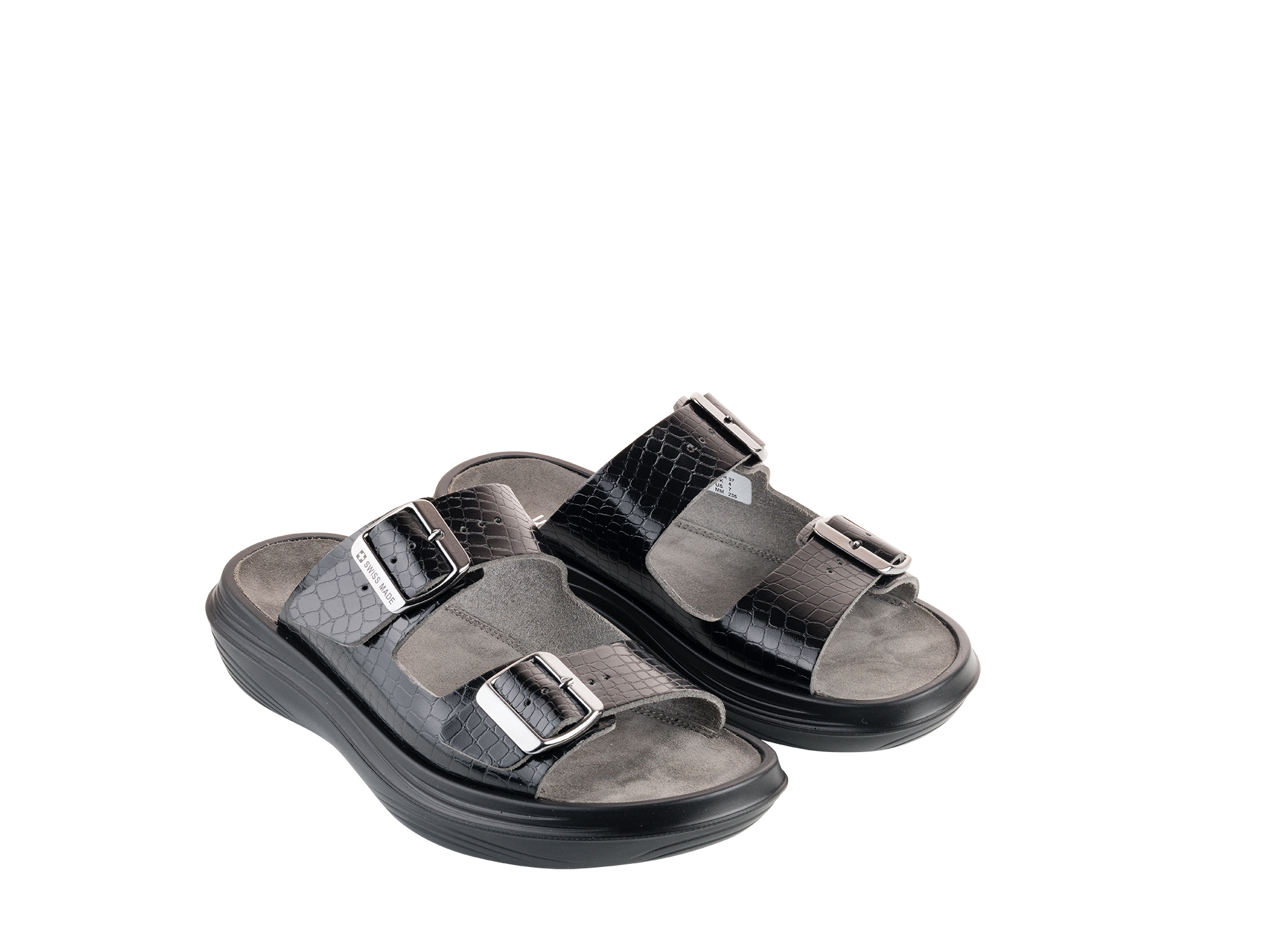 This popular slip-on is now available in black! The kybun Glarus Black is the slipper for every occasion. It is ideal for the home or in the office. Thanks to the two buckles, the comfortable and practical women’s model adjusts perfectly to every instep h