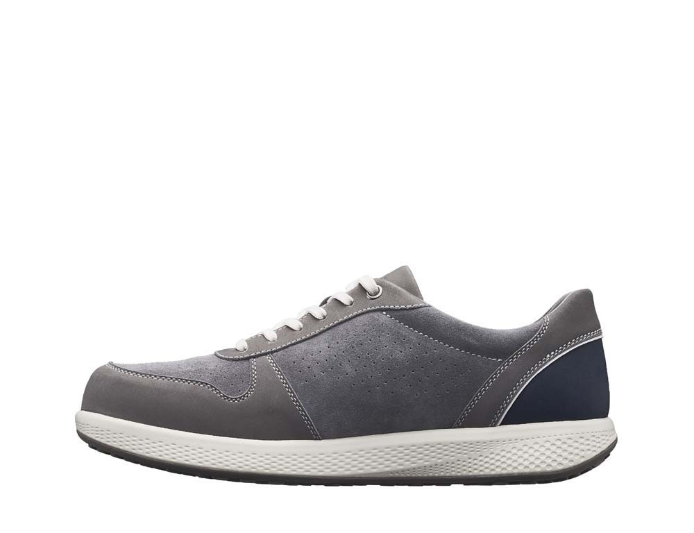 Sven grey II: Contemporary sneaker for relaxed mobility, with soft and robust nubuck and velour leather upper with smart contrasting details. The feel-good attitude is boosted by the wavy Ortholite Nuvola Foam Insole that provides an incomparably delightful wearing sensation. Topped off with the extraordinary Joya Nuvola sole technology, which comprises soft and elastic midsole plus lightweight rubber outsole.