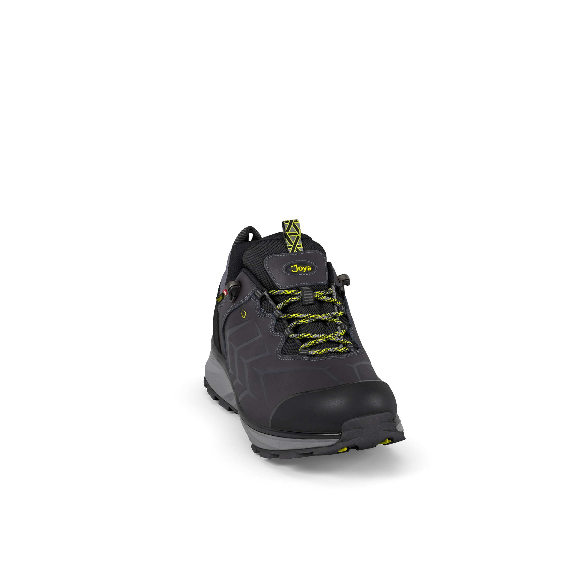 Denali STX dark grey: Robust outdoor lace up shoe with top metal hook and moulded TPU toe cap. Sturdy yet extremely comfortable. Fitted with Sympatex membrane construction, breathable and water resistant, to keep your feet warm and dry. Implemented with the Joya Active sole technology that guarantees an ideal combination of cushioning, rebound and stability. For dynamic people always on the move, who need comfort in action and performance on every surface. Outsole designed specifically for outoor activities.