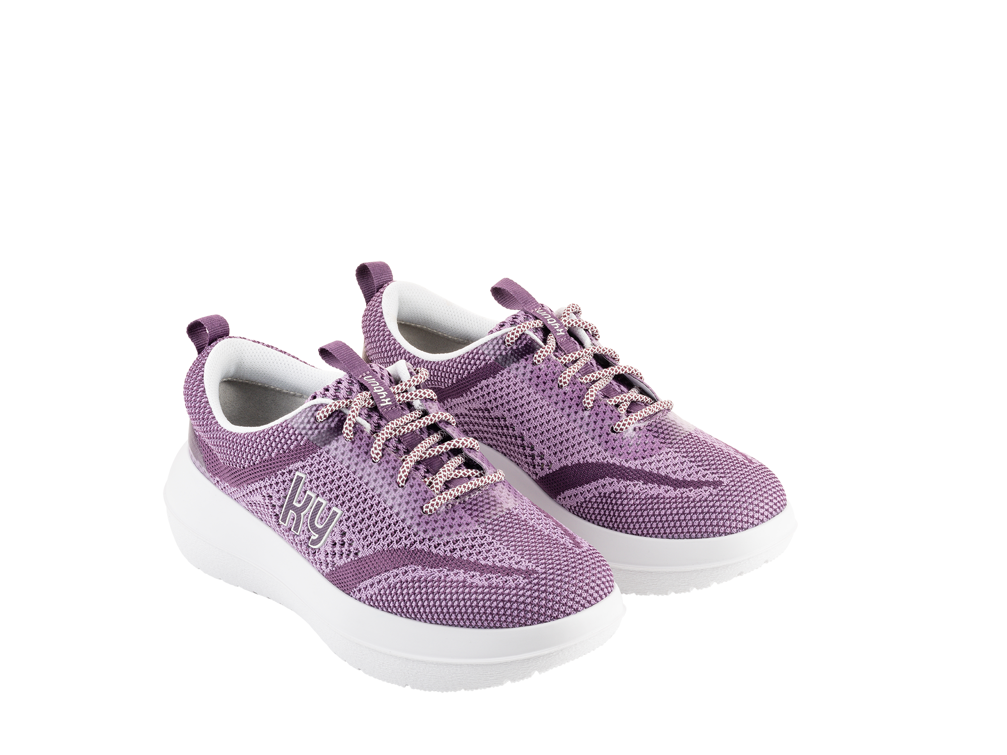 kybun Biel Purple captivates with its woven design. The longitudinal colouring of the colour purple in different gradations gives the model a sleek and daring appearance. Especially the laces add a sporty and youthful accent to this kybun shoe. Thanks to the sporty touch it can be combined almost infinitely. The airy and light materials make the style particularly suitable for the warmer seasons of spring and summer. Biel Purple is also available in the colour Biel Silver.