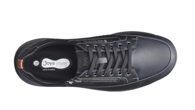 Bruno black: Full grain leather lace up shoe with additional zipper for easy entry, with breathable mesh lining. Featured with the Joya Senso sole technology that ensures excellent cushioning effect and balanced pressure distribution, and delivers optimum comfort and relief for your back muscles, joints and feet daily stress.