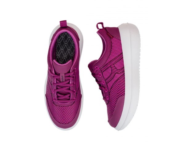 The village of Bauma in Switzerland is renowned for its processing of textiles, and in particular for the special Jacquard weaving machines. The kybun Bauma 20 Fuchsia takes its name from the elegant jacquard pattern. The Bauma 20 Fuchsia expands the Bauma collection with another trend colour and charms with its woven line design. This gives the kybun shoe a captivating look and adds a sporty, youthful accent.