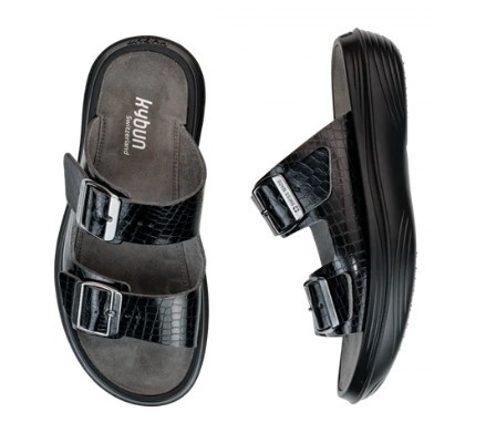 This popular slip-on is now available in black! The kybun Glarus Black is the slipper for every occasion. It is ideal for the home or in the office. Thanks to the two buckles, the comfortable and practical women’s model adjusts perfectly to every instep h