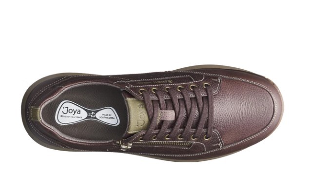 Bruno dark brown: Full grain leather lace up shoe with additional zipper for easy entry, with breathable mesh lining. Featured with the Joya Senso sole technology that ensures excellent cushioning effect and balanced pressure distribution, and delivers optimum comfort and relief for your back muscles, joints and feet daily stress.